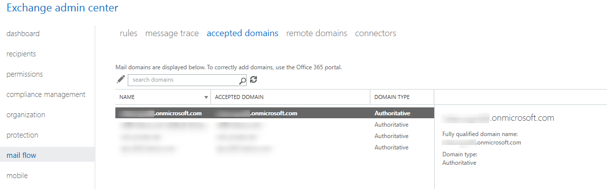 Retarus uses the customer’s tenant name (initial domain) to identify incoming messages for journaling. The initial domain name is created by Microsoft when you sign up for the service and cannot be changed for an existing subscription. The tenant name usually contains your organization domain name and takes the form yourorganization.onmicrosoft.com. The domain itself can be found, for instance, in the domain settings.