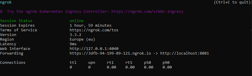 Mulesoft AnyPoint Studio (compiled program, hosted locally but reachable using NGROX via https request) listens to the HTTP Request von specified Port