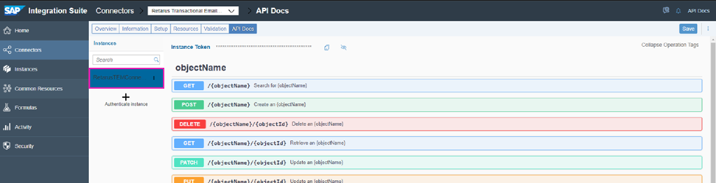 Now, the new connector should be turned into a working instance. As a result, it will become available via a SAP-native cloud URL with REST resource suffixes.