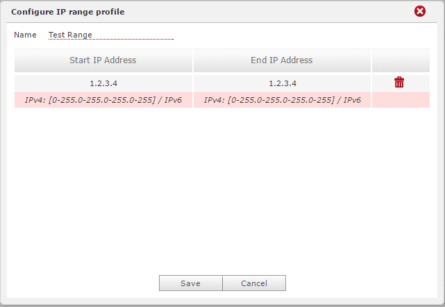 Using the Add new profile button, you can define an IP address (IPv4 / IPv6) or a new address range.